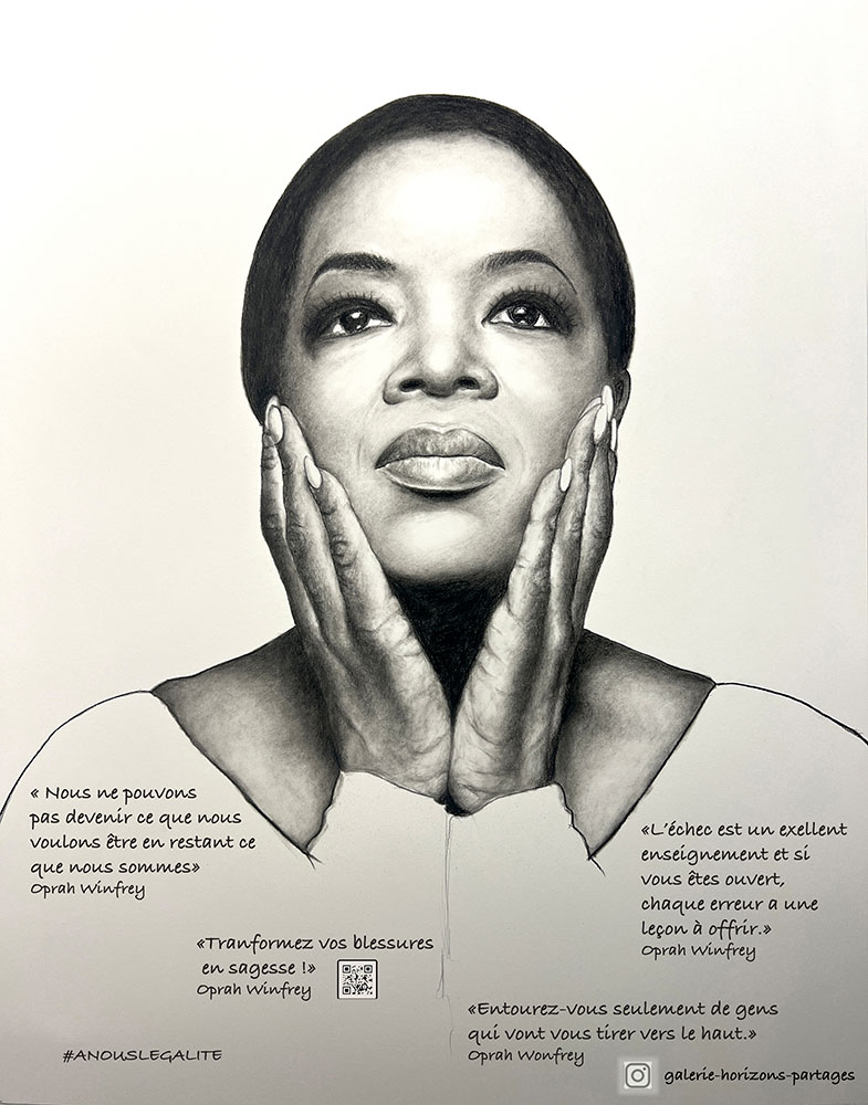 Je dessine également des femmes influentes pour célébrer la beaute et la diversite des femmes. Mes dessins mettent en valeur la force et la vulnérabilité, l’intelligence et la sensibilité, la passion et la détermination qui caractérisent les femmes influentes. Je crois que ces qualités sont des sources d’inspiration pour tous, peu importe notre sexe ou notre âge.